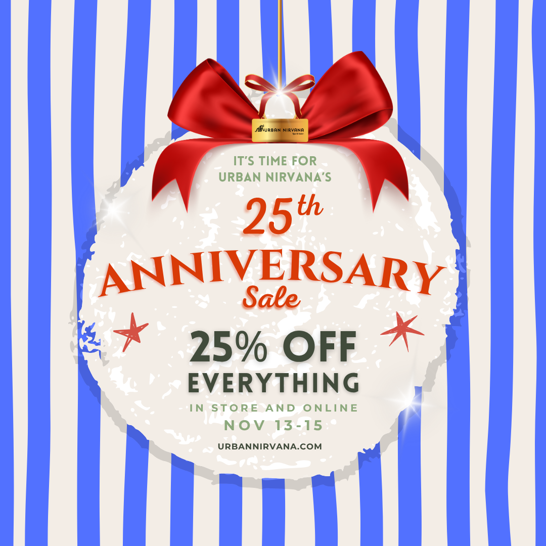Celebrate 25 years of Urban Nirvana in 2025! Enjoy 25% off everything! 25% off gift cards, services, and retail (in-store and online). Three days only! November 13-15. Treat yourself to a little nirvana.