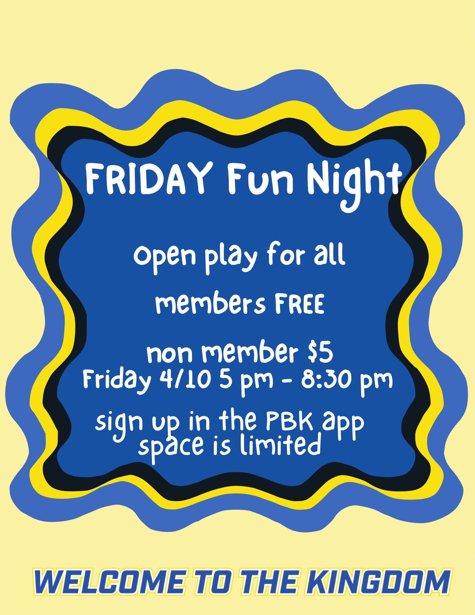 Kick off the weekend at Pickleball Kingdom’s Friday Fun Night Open Play on April 10th from 5pm to 8:30pm. Enjoy social, all-levels play and a fun, energetic atmosphere—just show up and play!